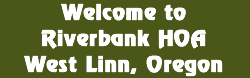 The Riverbank HOA is a cluster of 33 homes located just off of the Willamette River and Hebb Park, (with boat launch). It is an amazing wooded setting of dead end roads and close to both West Linn and Wilsonville. We are very close to the Canby Ferry and therefore only about 15 minutes from downtown Canby.The Riverbank HOA community has both, a walkable and bikeable road system within the community and is regularly used in these ways. We are joined by a wonderful sense of appreciation of our spectacular community and neighbors. Riverbank HOA is a Non-Profit registered with the State of Oregon.