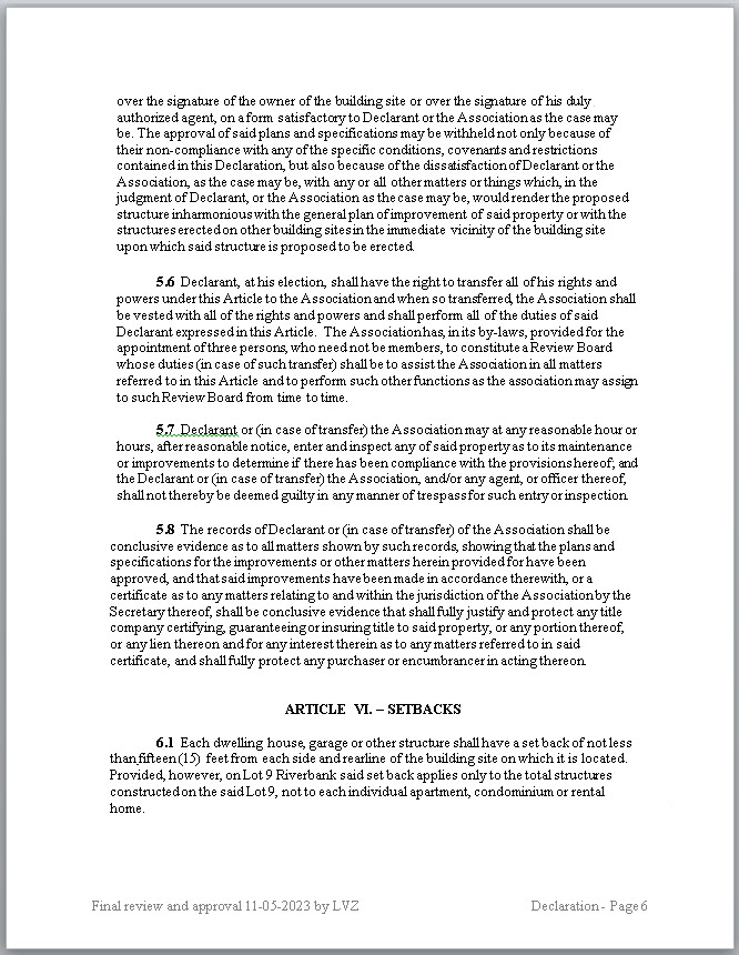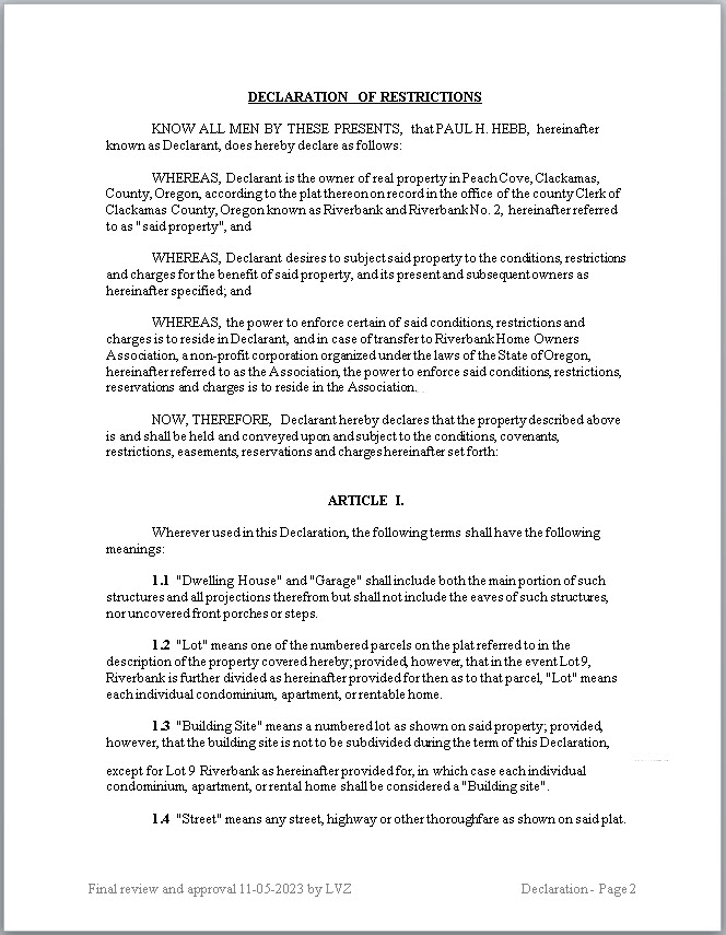 Declaration of Restrictions as a PDF (HERE)