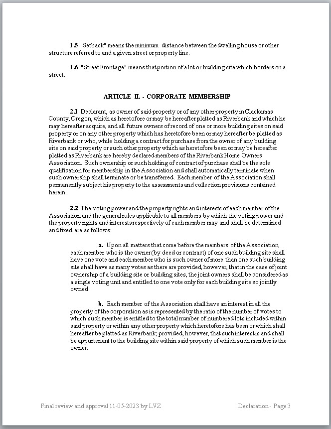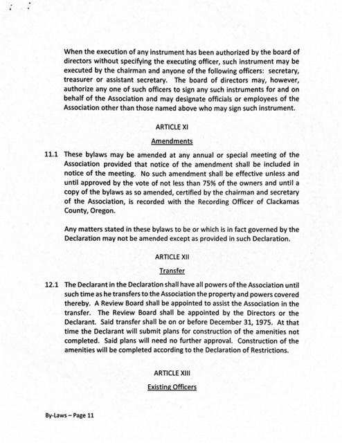 - BLUE: Blue ink and highlights are from the first amendment to the Declaration filed with the County on 02-06-1976.