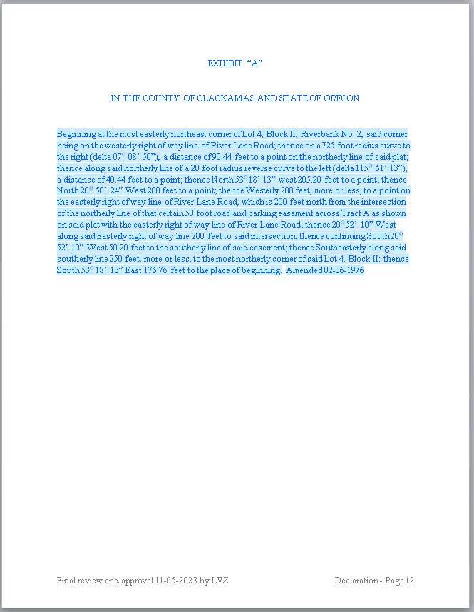 - BLACK: Black ink is the original Declaration filed with the County on 12-03-1973.