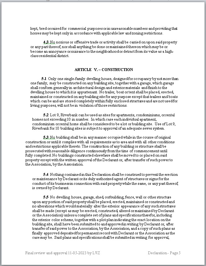 Declaration of Restrictions as a PDF (HERE)